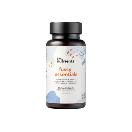 Fussy Essentials is a multivitamin that contains a combination of vitamins and minerals formulated specifically for children to help maintain nutrients within the normal range when dietary intake is inadequate.